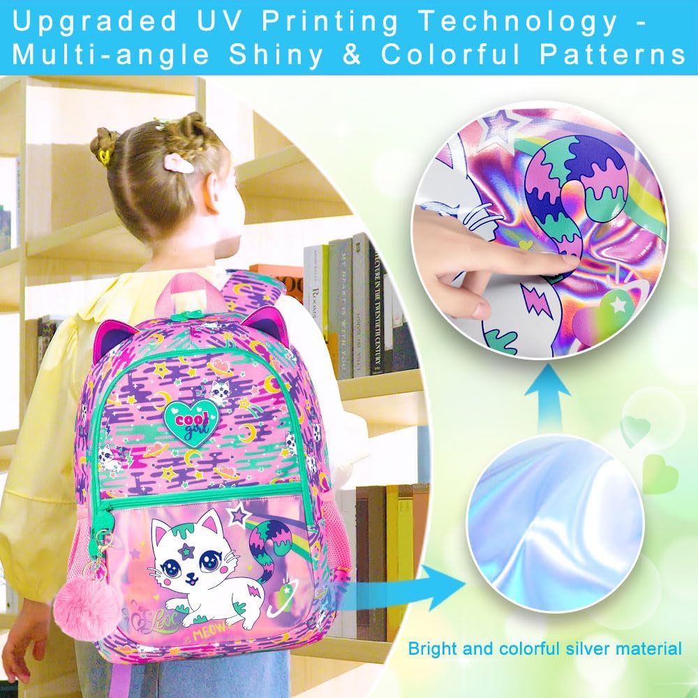Upgraded Style: Cute cat style bookbag for girls, with new uv printing technology added on the front to make the whole more colorful, carrying it on your back will make you the brightest star.