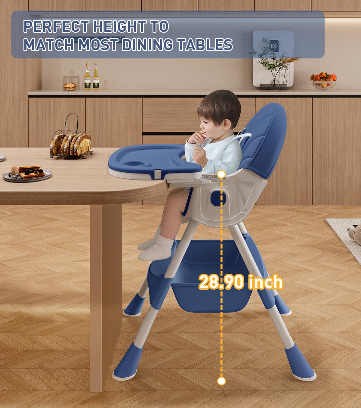 [EASY TO CLEAN AND STORE] We are well aware that taking care of babies is such a huge and complex task, so quick cleaning and storage is essential, the double removable tray allows for cleaning without baby having to leave the baby feeding chair. The PU leather cushion is waterproof and can be quickly cleaned by simply wiping down with a dry cloth or wet wipe. The compact foldable high chair can be folded away in a matter of seconds to save space when not in use.