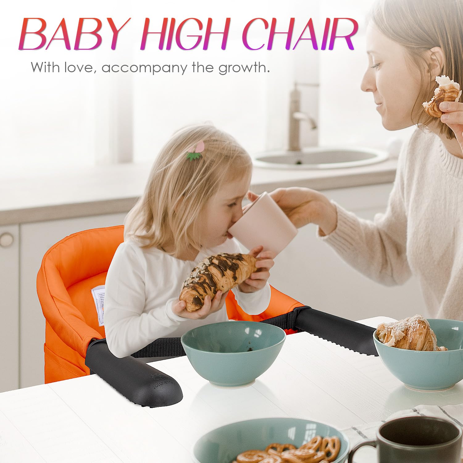 【Sturdy & Durable】The portable baby high chair features a strong aluminum alloy clamp that can support up to 15kg(33lb),suitable for infants and toddlers 6-36 months old